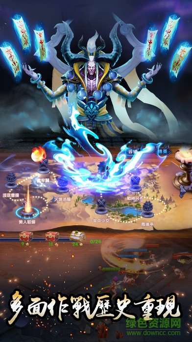 3.作为特色玩法推出不同於市面上大部分APPG游戏单纯地副本玩法,PVP部分增设即时MOBA,完全靠玩家的操作反应和策略武将阵容搭配来摧毁对方防御塔以获得战斗胜利。