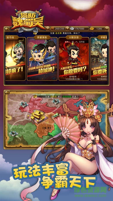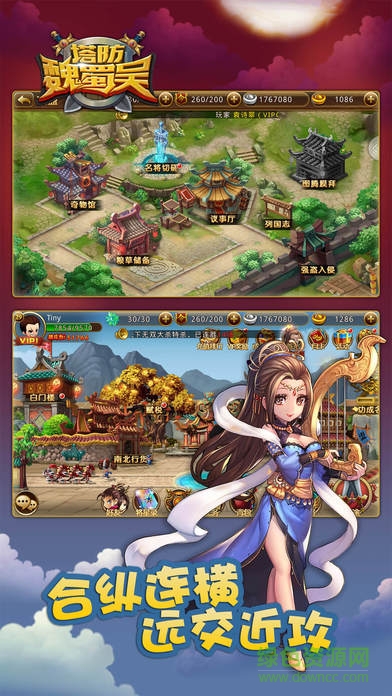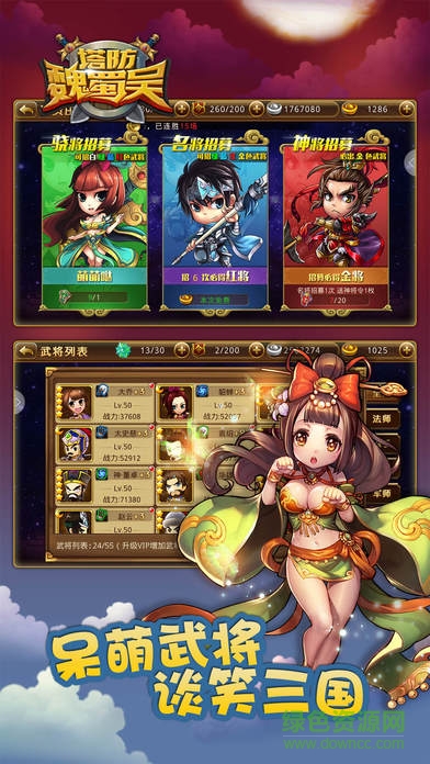 塔防魏蜀吴是一款非常好玩的手机策略塔防手游,是以三国为游戏背景的经典游戏,而且游戏人物还是超萌的Q版形象哦,想看三国人物的Q版形象是什么样吗,那就快来绿色资源网下载塔防魏蜀吴手游吧。