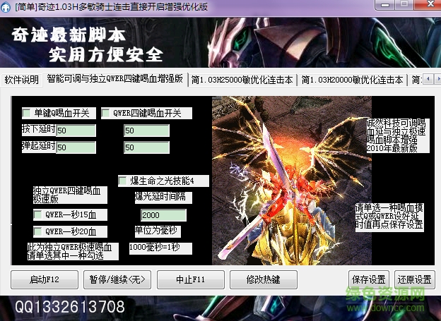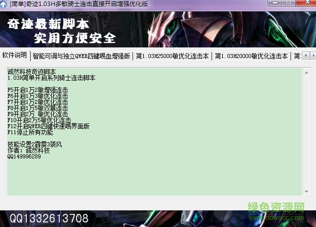 游戏介绍 游戏标签: 奇迹1.03h 奇迹连击脚本 游戏辅助 按键精灵奇迹连击脚本是一款由诚然科技专为奇迹1.03h打造的连击脚本辅助,集增强连击,双暴连击等等功能为一体,需要的朋友赶紧来绿色资源网下载吧按键精灵奇迹连击脚本功能说明F5开启1万2敏增强连击F6开启1万3敏优化连击F7开启1万2敏优化连击F8开启1万5敏双暴连击F9开启2万 敏优化连击F10开启2万5敏优化连击F12开启QWER四键快速喝界面版F11停止所有功能联系方式技能设置2霹雳3袭风作者:诚然科技qq149996289 游戏截图 上一张下一张(1 / 1) 安装详细截图 其他版本下载 标题 大小 更新日期 下载 下载地址 电脑版 奇迹1.03h连击脚本 直接开启增强版 点击报错 软件无法下载或下载后无法使用,请点击报错,谢谢! 关闭报错反馈 请描述您所遇到的错误,我们将尽快予以修正,谢谢! *必填项,请输入内容 本类最新 游戏加加pc版 v5.3.2439.909 官方最新版 洛克王国悟空神辅助最新版 v2.3.9.9 官方版 我的世界hmcl启动器 v3.5.5 最新版 悟空神辅最新版 v2.3.7.9 官方版 cf活动一键领取 v5.8.5 官方免费版 4399洛克王国东哥辅助最新版 v13.14 全能版 相关文章 IIS6.0下建立FTP“用户隔离”站点 RedHat Linux 红旗9.0安装图解 Win2003 Server企业版安装配置 系统加速解决方案之Windows2003 Windows2003 中怎样配置NAT服务器? IIS6.0平台下PHP最佳配置方法 用户评论 热门评论 最新评论 发表评论 查看所有评论(0) 昵称: 请不要评论无意义或脏话,我们所有评论会有人工审核. 字数: 0/500 (您的评论需要经过审核才能显示)