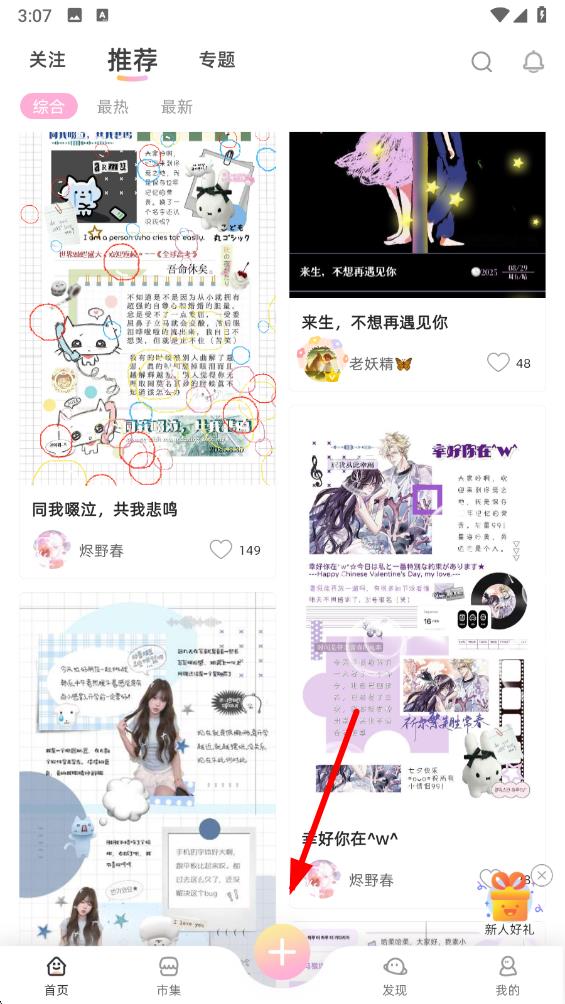 1、打开时光手帐APP登入注册后,在首页点击底部导航栏中间的加号按钮,唤起创建类型选项。