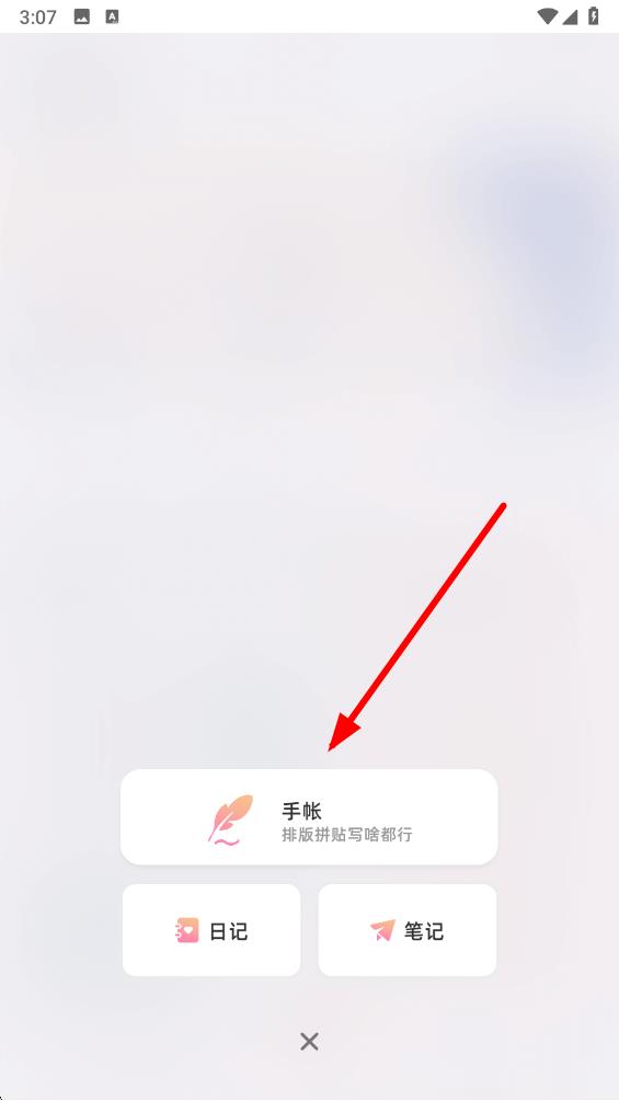 2、在弹出的选项中,点击手帐按钮,进入手帐编辑界面,开始制作。