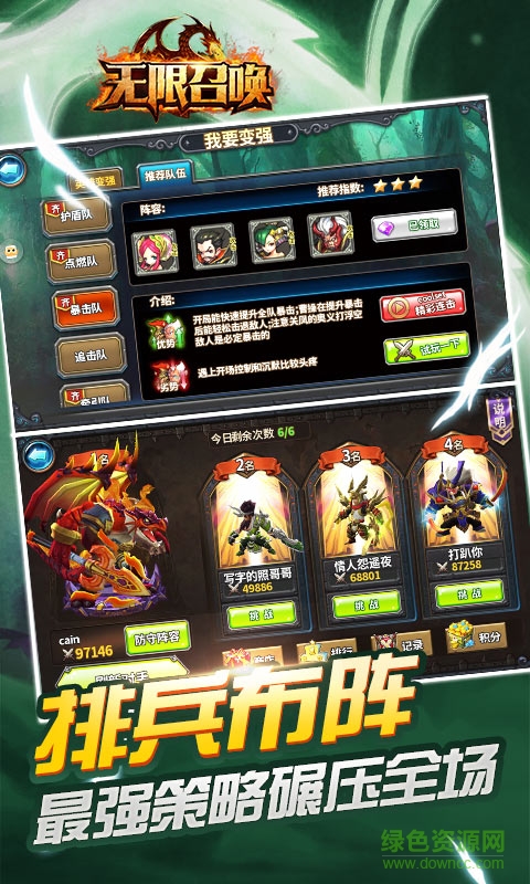 无限召唤bt版是一款非常好玩的策略卡牌手游,采用经典的回合制玩法,游戏角色非常的萌,玩家需要利用自己的智慧一步步闯过关卡,喜爱的朋友赶快到绿色资源网下载体验吧!