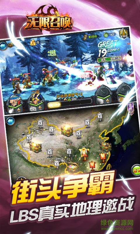 《无限召唤》是一款史诗幻想题材的连击卡牌手游,在游戏中打造专属你的超神战队,在战斗中精细操作,角色配合形成华丽连击,释放必杀奥义,震碎屏幕;独创的LBS街霸踢馆系统,基于真实地理位置PK,让你和附近的小伙伴一较高下,打造专属你的超神战队,角色配合形成华丽连击,百战不殆,从“街头霸王”成长为“最强王者”!夺取巅峰荣耀!