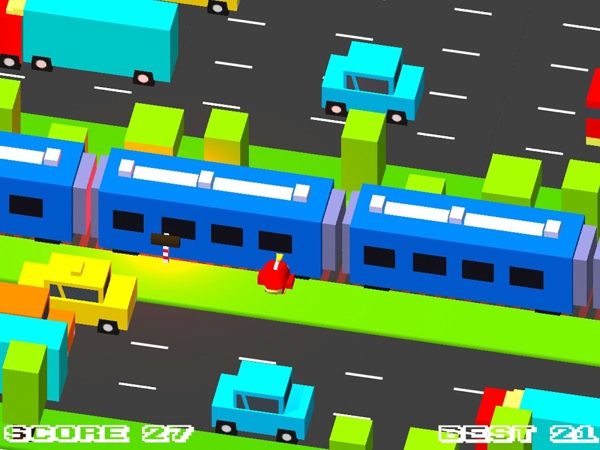 你需要控制鸡通过车道跳车道,避免撞到任何巴士,汽车或火车。它就是这么简单。