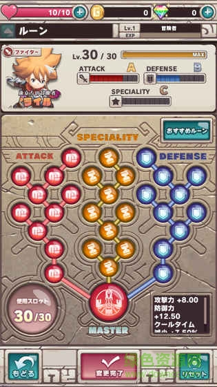 以游戏人物培养为主要玩法的该作,大体上和其他游戏作品没有什么区别。只不过从细节中我们可以看到,游戏人物的特性主要分为攻击、防守、特技三类。三系各有不同评分,是攻击型为主,还是防守型为主,需要玩家们自主选择。不过要成为最终的大师级角色,需要最后三系都足够强大时,才能进阶新领域。