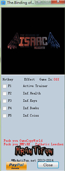 以撒的结合重生四项修改器是为了添加了无限生命、无限钥匙、无限炸弹以及无限金钱等功能,帮助玩家更加容易的通关,增加游戏乐趣。
