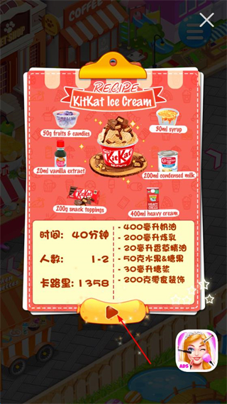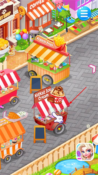 2、进入主场景后找到KitKatIceCream摊位,点击该摊位进入对应的制作界面。