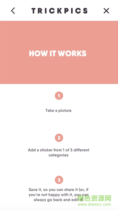 Trickpics是一款非常好用的修图滤镜工具,内含多种贴纸和滤镜特效,轻松美颜修图滤镜切换流畅,修图多变轻松玩转您的照片。快来绿色资源网下载体验吧!