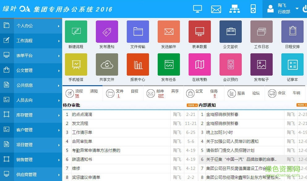 让工作人员通过绿叶oa系统,使他们能够快速地访问内部信息平台,快速提交和查询数据。如进行费用报销、视频会议、公文传递、文件传输、邮件收发。支持会议安排查询和车辆调度管理,同时加强业务管理,提供包括销售、库存、政务、教务、医务等应用。
