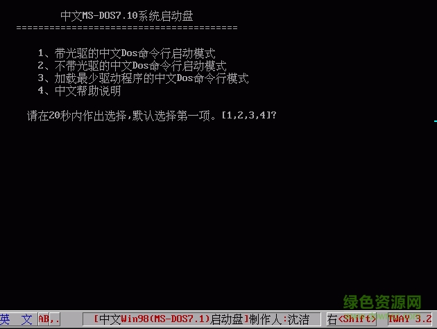 全中文MS DOS7.1启动盘是一款专为pc用户打造的ms命令行启动程序,通过该命令行可以解决系统的n多问题哟,需要的朋友赶紧来绿色资源网下载吧