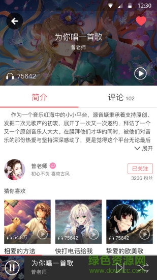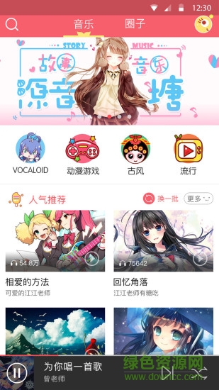源音塘app是一款二次元系列免费音乐app,这里有海量原创音乐、热门动漫影视主题曲、片尾曲、神曲等,资源丰富,是喜欢二次元音乐朋友的福音哦,更多音乐app尽在绿色资源网!