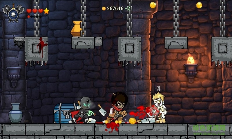 游戏的操作与大部分的横版冒险类游戏相似,左下角的虚拟按键控制角色的左右移动,右下角的两个虚拟按键则分别是跳跃和攻击。本作的攻击方式不同于其他同类游戏那样肉搏,角色会将所持武器丢出去砸人。除了法杖是射出魔法球,其余武器无论是长剑还是菜刀还是匕首还是锤子,统统都是丢出去。同时,游戏中用武器丢中怪物头部是会产生暴击伤害的,这也需要玩家有特别的丢武器技巧才能爆头。