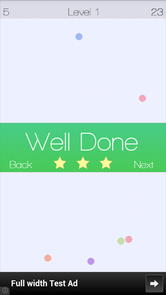 玩法很简单,点击屏幕上的点,它会变大一段时间,若在这段时间内有其它点撞上,也会变大。而你需要尽可能的消除多的点,才能拿到星星。
