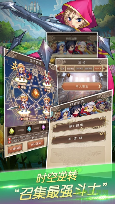 当玩家收集到各色超强的少女部下后,将会在时空法阵中解锁对应位置。随着收集度不断增长,玩家还将获得多种精彩奖励。在集齐了整个时空法阵中的少女部下后,还可以与邪恶女王进行战斗!