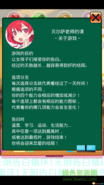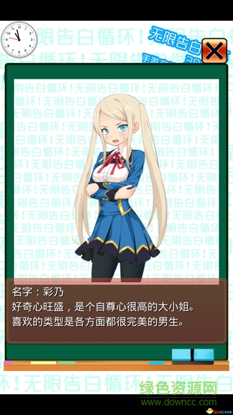 无限告白循环汉化版是一款非常好玩的恋爱游戏,喜欢玩二次元恋爱游戏的朋友们不要错过了,画面精美细腻,玩法丰富有趣,还等什么,快约上你的小伙伴,一起来绿色资源网踊跃下载吧!