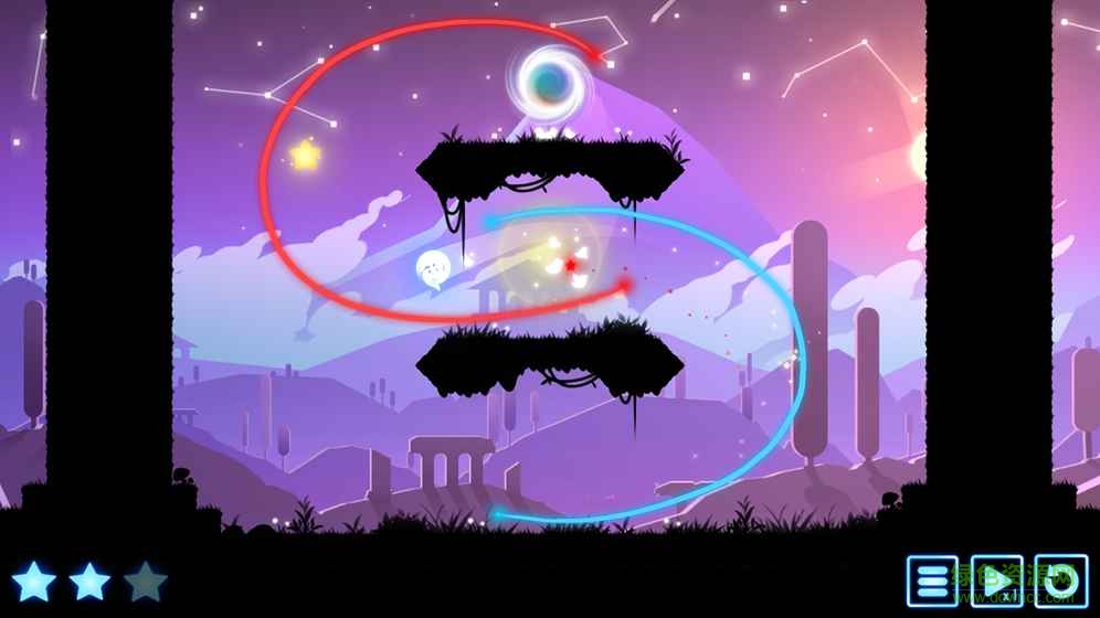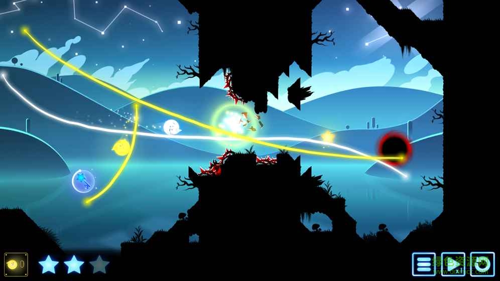 游戏的画面十分的唯美,璀璨的星空经常会有一阵阵流星划过,连玩家画出的各个银色、蓝色的线条都充满了奇幻的味道。