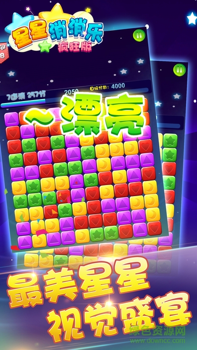 星星消消乐疯狂版是一款非常好玩的手机三消游戏,也是一款全新的消灭星星游戏玩法,精美的游戏画面,丰富多彩的游戏玩法,既可以用来打发时间,还可以锻炼自己的智力与脑力,欢迎有兴趣的朋友来绿色资源网下载吧。