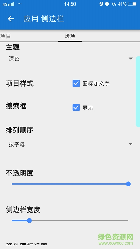 - 支持自定义图标选项(长按该项目弹出相关菜单)