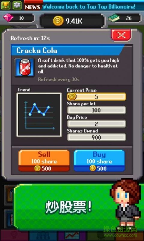 点点亿万富翁汉化版ios是一款汉化中文版模拟经营手游,这款游戏采用了像素风格,玩家可以在游戏中扮演一位亿万富翁,可以雇佣,炒股,轻松赚钱,屌丝们在这里都可以马上成为亿万富翁哦!心动的小伙伴马上来绿色资源网下载体验吧。