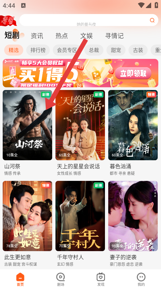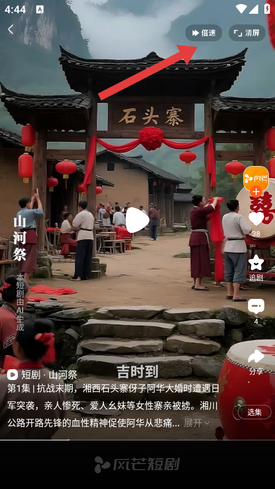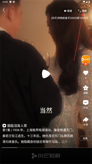 1、打开风芒APP,在首页短剧分类下,点击想要倍速播放的短剧,进入短剧播放页面。