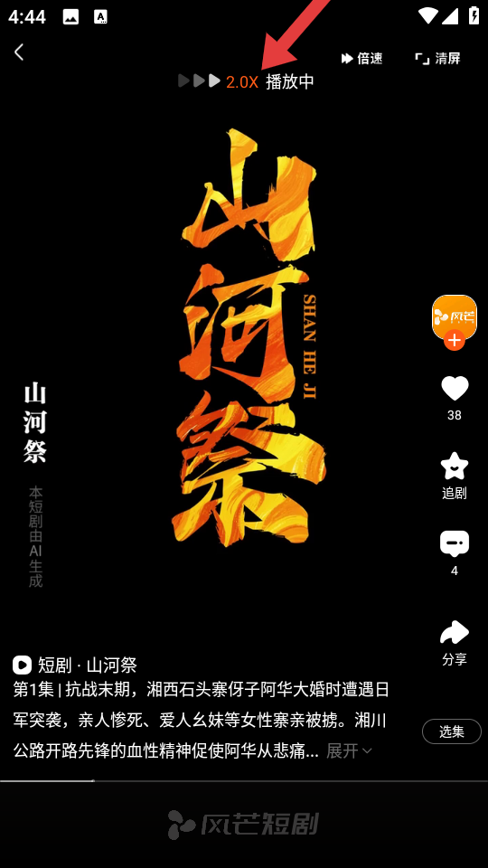 2、进入短剧播放界面后,长按播放画面任意的位置,可以进入2.0x播放。