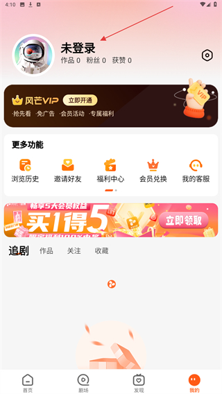 1、启动风芒的应用,在首页点击底部我的按钮。