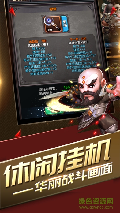炫:不再是文字mud式的战斗,炫目的战斗特效、华丽的装备外观、数以百计的怪物外形、全程人声语音,你确定这是一个挂机游戏?