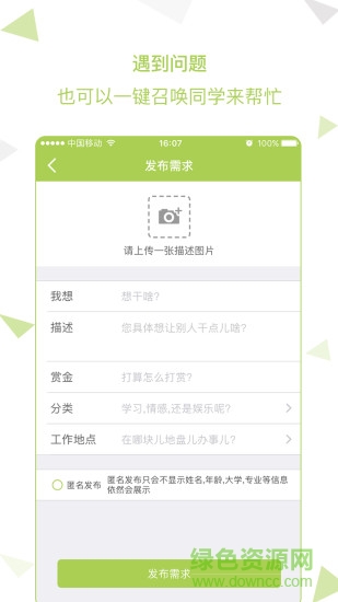 兼果校园app苹果版是一款校园生活服务应用软件,主要服务与生活小问题,只要发布任务以及对应赏金,就有校友轻松帮你解决,是不是很酷炫呢,欢迎到绿色资源网下载体验!