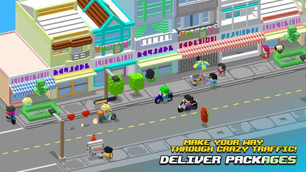 送货小哥游戏是一款卡通像素横版风格的休闲类游戏,游戏中有多种交通工具任你选择驾驶,超简单休闲过马路玩法,超刺激好玩游戏体验,需要有效率安全的将货物运输到不同目的地,安全的将物品送达主人手里。操作简单但是还是有些挑战性的哦!快来绿色资源网下载体验吧。