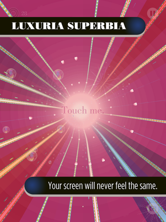 色欲和傲慢Luxuria Superbia是一款音乐游戏。游戏的名字源自于中世纪的七宗罪的概念, Luxuria 对应 Lust(色欲)之罪,Superbia 对应 Pride (傲慢)之罪。从空白到多彩,从黑暗到光明,从地球到天堂,它带来了感官和精神上的双重体验。游戏的抽象美学令人想起了鲜花和寺庙,游戏既没有角色,也没有故事情节,沿袭了 Tale of Tales 团队一贯的“非游戏的游戏”的制作理念。玩家可以根据自己的喜好,选择休闲或策略模式。