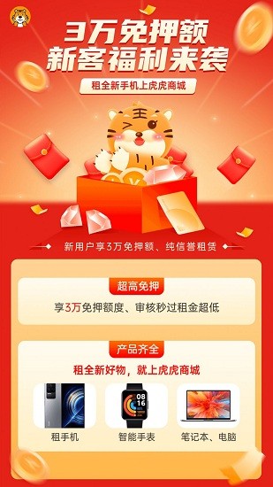 2.在虎虎商城平台,用户只需支付月租金,便可在商城租到各大知名品牌手机,以及各种新潮3C数码产品;