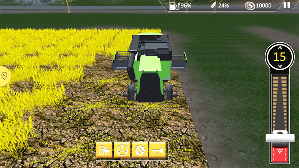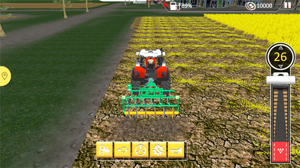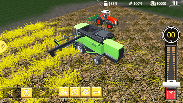 - 用简单的点击就能控制拖拉机、收割机的方向、速度等。