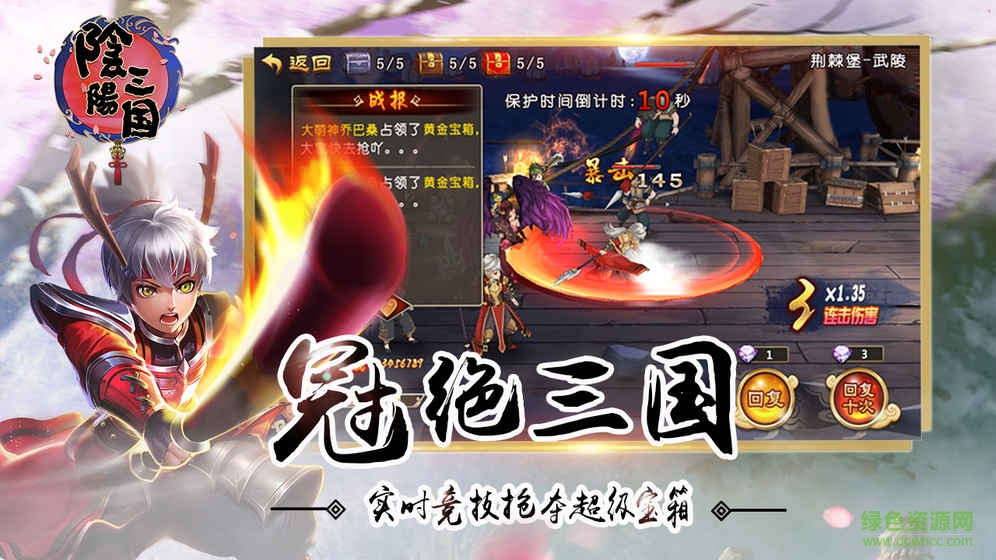 宝箱乱斗是《阴阳三国》的核心玩法之一,游戏根据玩家等级划分多个宝箱区域,每天整点在区域内刷新4个黄金宝箱,宝箱内随机出现极品武将、武将碎片、装备碎片等,移动到宝箱上进行宝箱占领可以获得资源。遭遇战、古战场击杀BOSS…多种多样、玩法不同的PK战斗,PVP实时竞技,PVE副本探索玩法,美女战将在被暴击后触发的“爆衣”更是游戏一大看点。