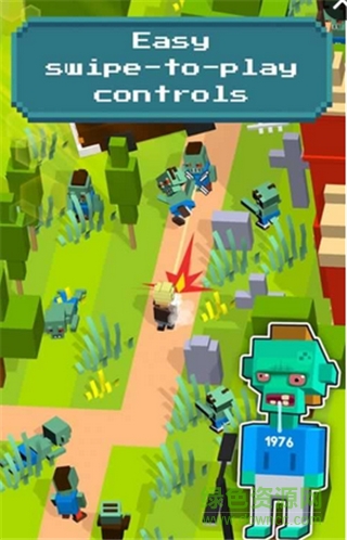 游戏采用了可爱清新的3D像素画风,玩家需要操控主人公不断前进并躲避沿途的各种僵尸,你可以收集并使用道具,还可以用金币购买新的皮肤,感兴趣的话就不要错过赶紧来下载吧!