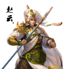 智勇双全、一身是胆的常胜将军。白马银枪,武艺绝伦,长坂坡单骑救阿斗,在乱军中七进七出,杀曹营名将五十余人。后成为诸葛亮左膀右臂,多次完美实施其计策。正史上地位较低,领军次数不多,反而以德行、见识著称。