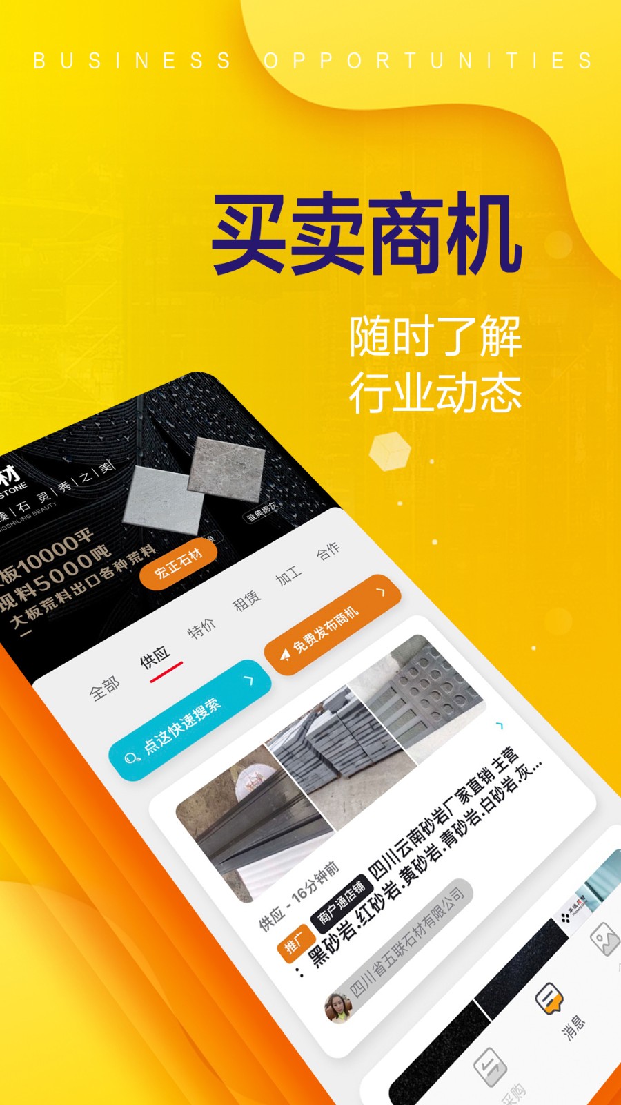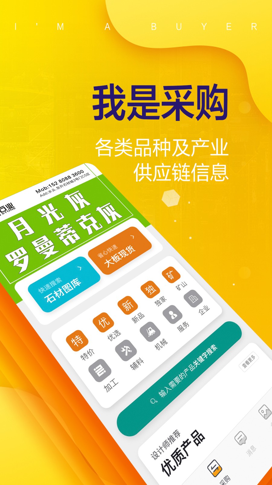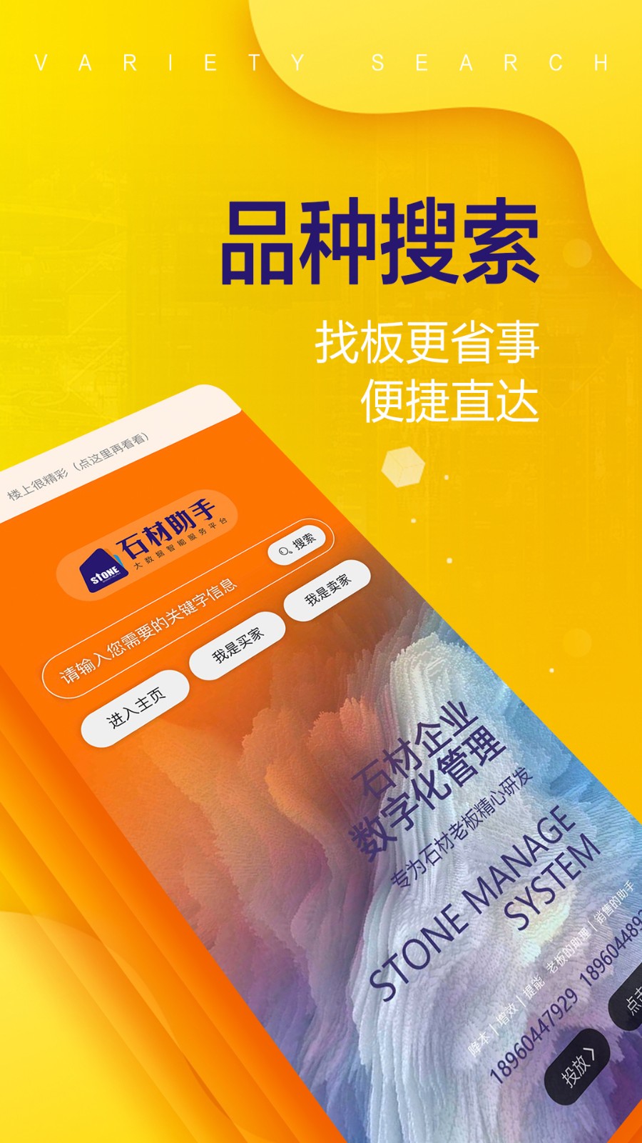 2.一个垂直服务于石材行业的互联生态平台,旨在为石材供需人士提供即时、准确、便捷的信息交换和服务对接。