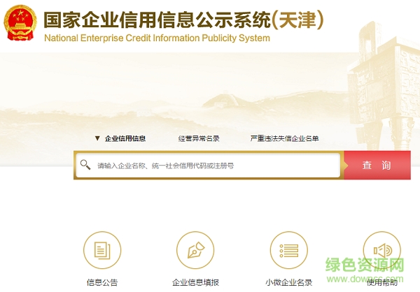 天津企业信用信息公示系统是一款专为天津本地的企业提供企业信用查询的软件,企业用户能够在线进行查询,了解自己企业的信用情况,及时了解自己公司的运营状况。有喜欢的朋友就赶快来绿色资源网下载使用!