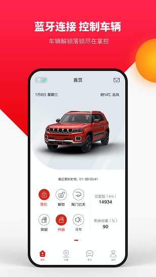 悦野圈bj30在这里用户可以绑定自己的智能汽车,在手机上时刻监测汽车的各项数据,自动帮你定位汽车的位置,每天记录汽车的行驶各项数据,还可以在手机上控制汽车的空调,各项数据都会显示在软件的首页,让你可以按照需求进行控制调节,欢迎有需要的朋友下载使用!