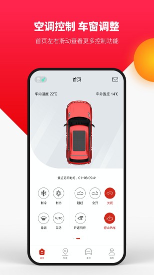 2、掌上控制车辆空调,制冷、制热都能掌上操作,自由控制车内的空调。
