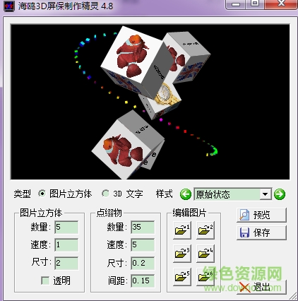 程序采用人性化设计,将各种菜单,对话框,选项等设置做到最简单化,再加上内置的几十种图片,文本特效,让你只需要进行简单的设置就可以轻松制作出非常精美的3D屏幕保护程序,