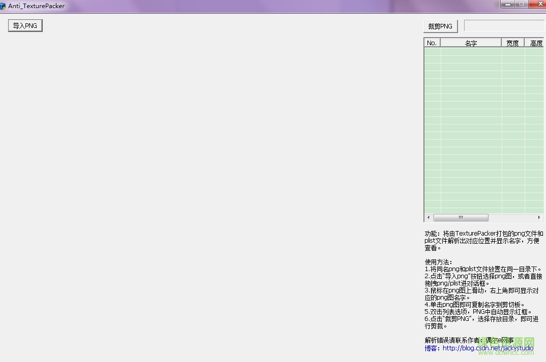 2、点击“导入png”按钮选择png图,或者直接拖拽png/plist/pack进对话框。