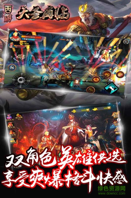 重现了西游取经路上经典的神魔剧情。玩家在进入游戏后,可操作西游中经典角色孙悟空进行游戏。随着玩家游戏深入,可解锁其他角色。每种角色都拥有独特的战斗方式、技能。玩家可根据自己的格斗风格,随意组合出场角色,最高能支持两名角色同时战斗。只要点击方向键上方按钮,就可实时切换。