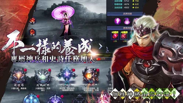 稀有武将大收集,每个武将都极具特色,等你一一纳入麾下。奇珍宝物分散到游戏各个系统中,强调“日常收集”和“效果搭配”给玩家极大的追求动力,并且为每个武将设立了专属神兵宝物和专属史诗任务,为玩家打造最具个性和强势的终极神将。