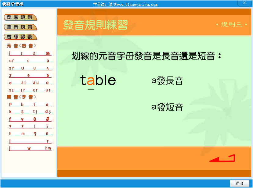 软件介绍 软件标签: 音标学习 我要学音标 我要学音标免费的音标学习软件,系列动画教学方法简单而有趣,学习轻松愉快,非常好的下英语学习软件。我要学音标是一款绿色免费的儿童英语音标学习软件。英语音标就像汉语拼音一样,学习好音标你才能有标准的英语发音。软件以一系列活泼可爱的动画为载体,学习几乎所有的英语音标知识,包括各种元音和辅音,动画形象生动,容易理解和掌握。 软件截图 上一张下一张(1 / 1) 安装详细截图 猜你喜欢 英语音标app 英语音标app 英语音标学习软件是为英语初学者整理的英语学习应用。提供了专业的英语音标学习服务,真人发音,通过在线跟读对比、单词听写、音标听写多种形式的选择题练习和测试功能,让你轻松学会音标。欢迎小伙伴们来绿色资源网下载使用。 查看更多>> 角斗士我爱音标正式版 18.90M/中文/10.0/v1.52 最新免费版下载 英语音标大师软件 9.86M/中文/10.0/V2.5 免费版下载 音标小助手电脑版 8.21M/中文/10.0/v4.2 官方pc版下载 我爱学音标 22.74M/中文/10.0/v1.4 官方最新版下载 铜英语音标学习程序(儿童英语学习) 416KB/中文/10.0/v1.0 中文绿色单文件版下载 水淼音标学习机(英语音标学习) 972KB/中文/10.0/v1.2 绿色免费版下载 其他版本下载 标题 大小 更新日期 下载 下载地址 电脑版 我要学音标(英语音标学习工具) v1.0 官方安装版 点击报错 软件无法下载或下载后无法使用,请点击报错,谢谢! 关闭报错反馈 请描述您所遇到的错误,我们将尽快予以修正,谢谢! *必填项,请输入内容 本类最新 offergoose多面鹅 v1.0.28.2 最新版 多面鹅面试工具 v1.0.28.2 最新版 课海网电脑版 v2.2.3.2 官方版 人人通教育平台电脑版 v1.0.3 官方版 师训宝管理端最新版pc v5.0.7 官方版 一起小学学生pc版 v2.6.4 官方最新版本 相关文章 WindowsXP系统QQ语音聊天时对方听不到使用者的声音故障解决方案 用户评论 热门评论 最新评论 第 1 楼 广西玉林玉州客人 发表于: 2014/11/01 21:58:22 感觉非常不错,可以一边看动画,一边学英语,发音也很标准,很棒 支持(0) 盖楼(回复) 发表评论 查看所有评论(1) 昵称: 请不要评论无意义或脏话,我们所有评论会有人工审核. 字数: 0/500 (您的评论需要经过审核才能显示)