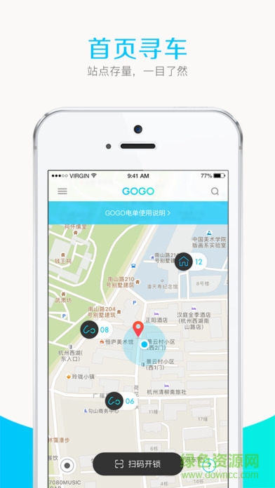GOGO出行app是一款绿色出行共享单车租赁软件,使用该软件用户可一键搜索附近车辆,快速扫码开车骑走,无需停车桩即可快速停车,摆脱交通拥堵的烦扰,更有免费骑行活动等你来参与,需要的朋友欢迎来绿色资源网下载!