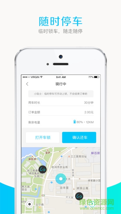 支持临时停车,锁车不结束订单。年轻的人生想停就停,属于您的GOGO一直在路边守候。