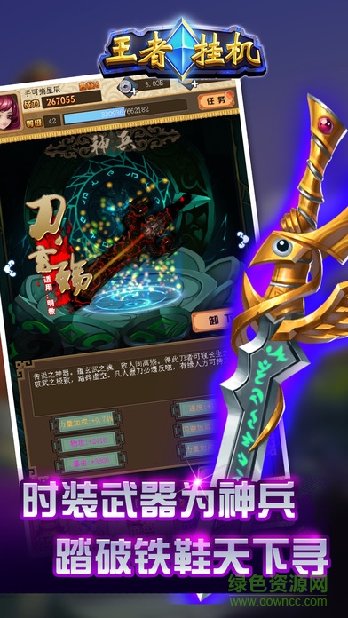 王者挂机是一款非常好玩的挂机类手游,拥有不一样的挂机玩法,超清的画面,简单的操作解放你的双手,更多精彩等你来,有兴趣的朋友可以来绿色资源网下载!