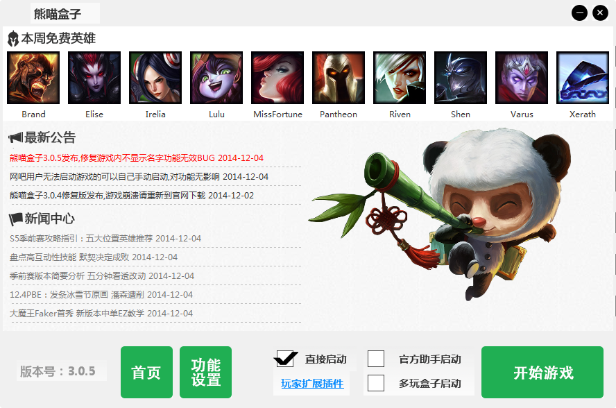 熊喵盒子是一款lol的辅助工具,拥有英雄换肤、野怪血量、补刀提示等功能,另外熊喵英雄联盟盒子还支持玩家自助扩展插件,使用更具创造性!