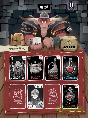 《卡牌潜行者 Card Crawl》是一款制作精良的卡牌类游戏。在《卡牌潜行者》中各位需要在一只长相怪异的猴子面前进行抽卡,并且每一回合可抽5次,通过随机获取各种道具,最终成功打败将会在地牢遭遇的各种怪物。除此之外你在《卡牌潜行者 Card Crawl》在地牢进行冒险时,还能够收集不少金币,使用它们可以来换取一些特别技能的卡牌,轻松取得过去艰难对决的胜利哟!喜欢卡牌冒险的玩家不可错过!