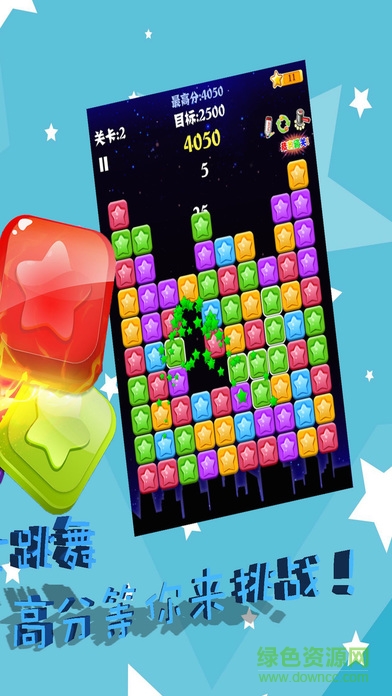 休闲消星星是一款非常好玩的的消除游戏,和消灭星星游戏玩法差不多,都是很简单的,大家都可以轻松上手玩,是一款老少皆宜的游戏,欢迎有兴趣的朋友来绿色资源网下载。
